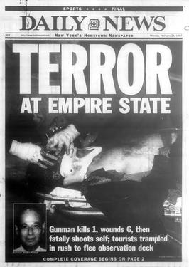 On February 23, 1997, at approximately 5:00 p.m., Abu Kamal visited the 86th-floor observation deck of the Empire State Building in New York City. Armed with the recently acquired handgun, he opened fire on the crowd, killing 27-year-old Danish musician Christoffer Burmeister and wounding six others. He then turned the weapon on himself, inflicting a fatal gunshot wound to the head.